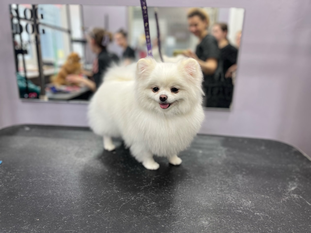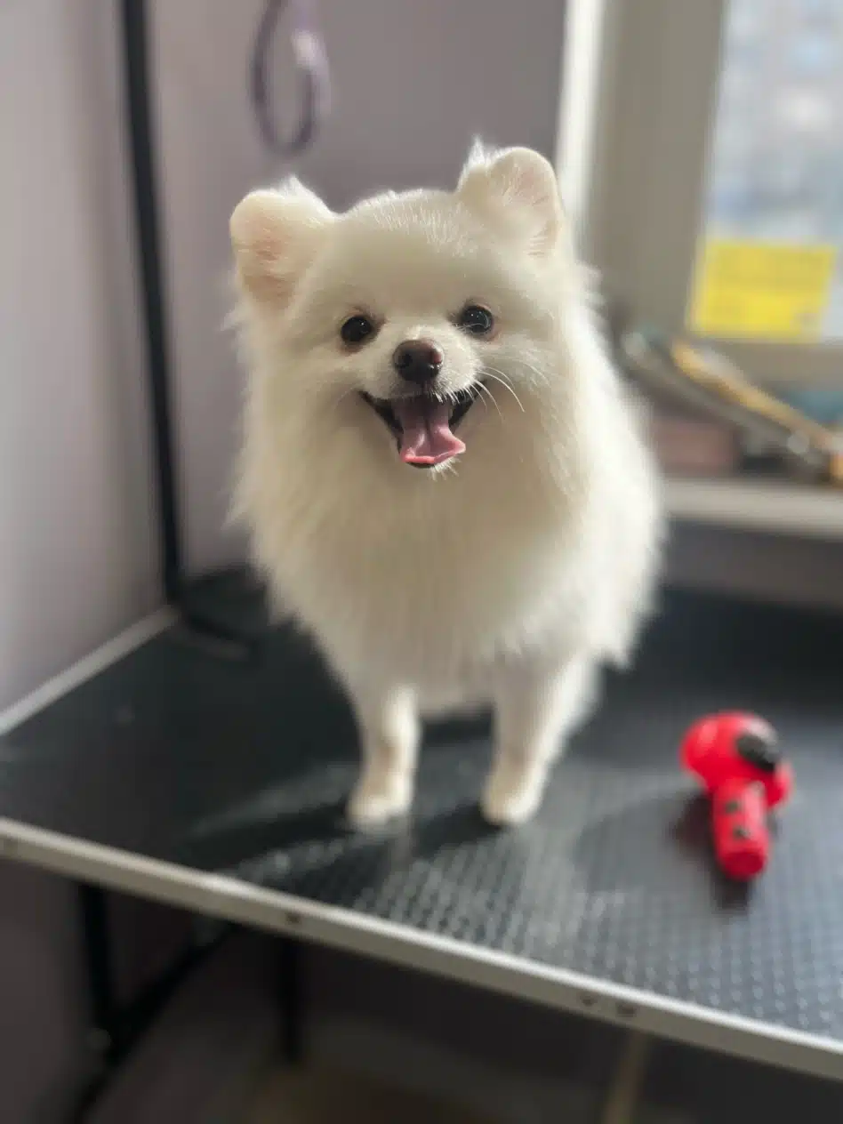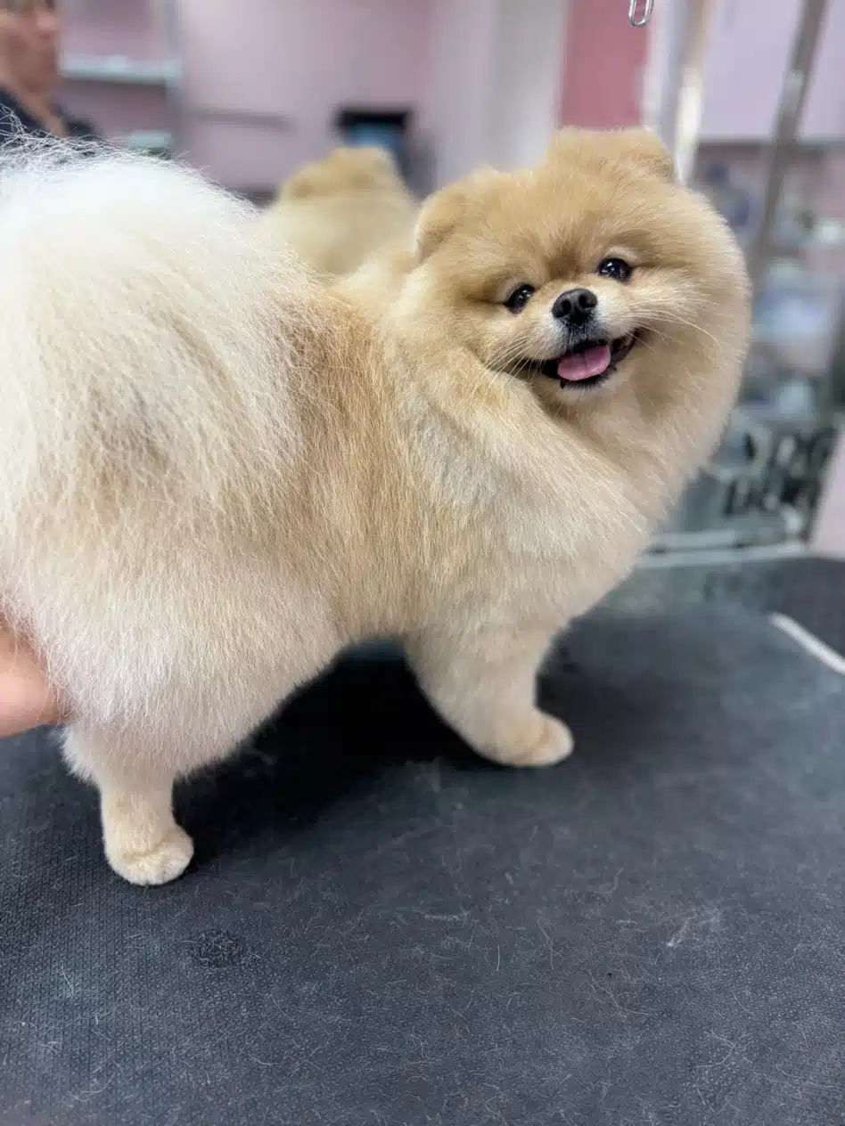 Nigdy nie strzyż szpica do samej ziemi – nawet latem. Jego sierść nie tylko zdobi pysk, ale także chroni skórę przed przegrzaniem i poparzeniem słonecznym. Strzyżenie szpica powinno być delikatne i utrzymywać długość włosa co najmniej 2-3 cm. Wybierz salon, który ma doświadczenie w pracy ze szpicami pomorskimi, ponieważ jest to rasa o specjalnej strukturze sierści i zachowaniu. Przed strzyżeniem omów styl z groomerem, pokaż przykłady, powiedz jak zachowuje się Twój szpic – czy spokojnie reaguje na dotyk, czy ma alergie lub problemy skórne. A co najważniejsze, nie próbuj obcinać sierści samodzielnie w domu: nawet niewielkie uszkodzenie sierści może kosztować szpica lata rekonwalescencji. Najlepszym wyborem są delikatne, precyzyjne dłonie doświadczonego groomera, który wie, jak podkreślić piękno tej wyjątkowej rasy bez wyrządzania jej krzywdy.