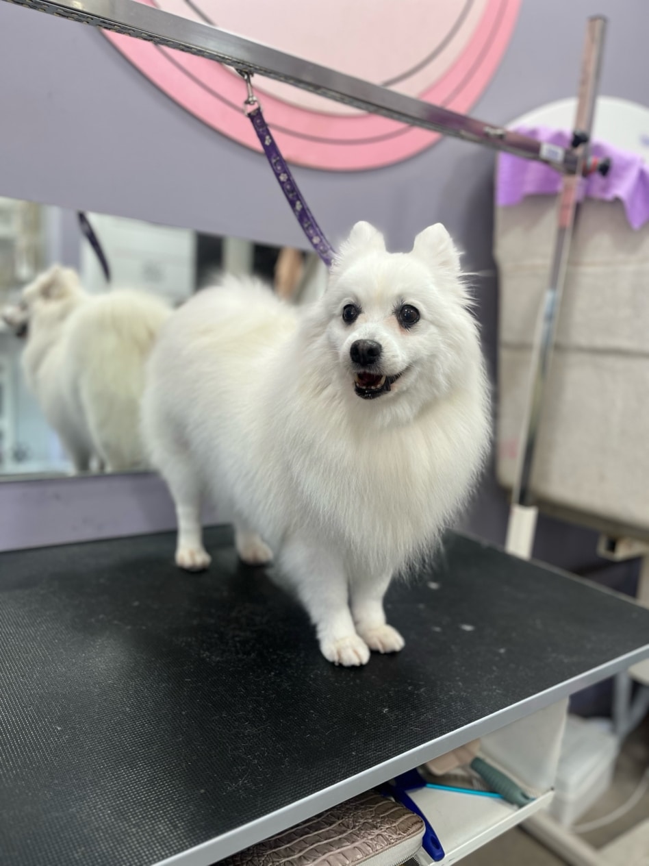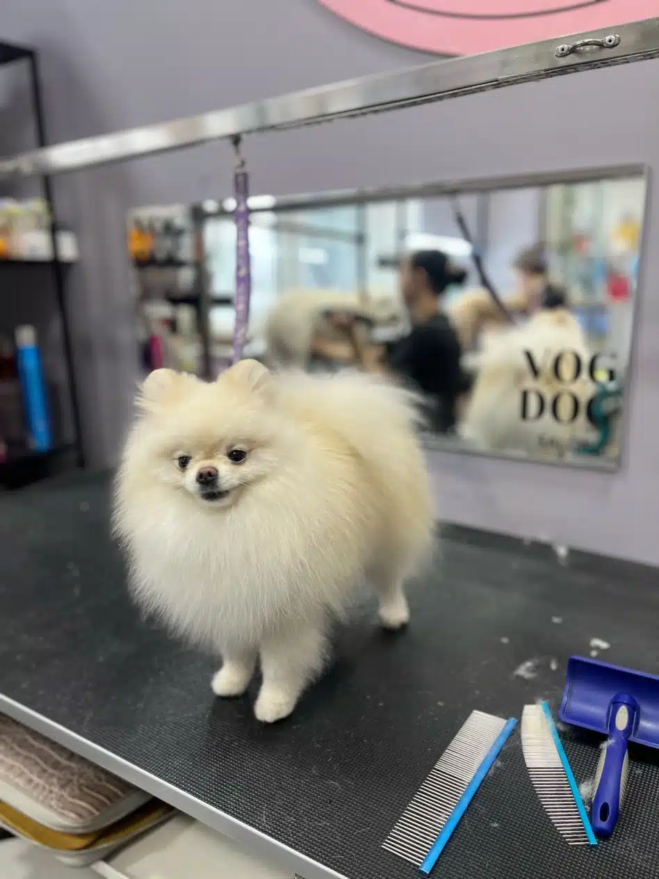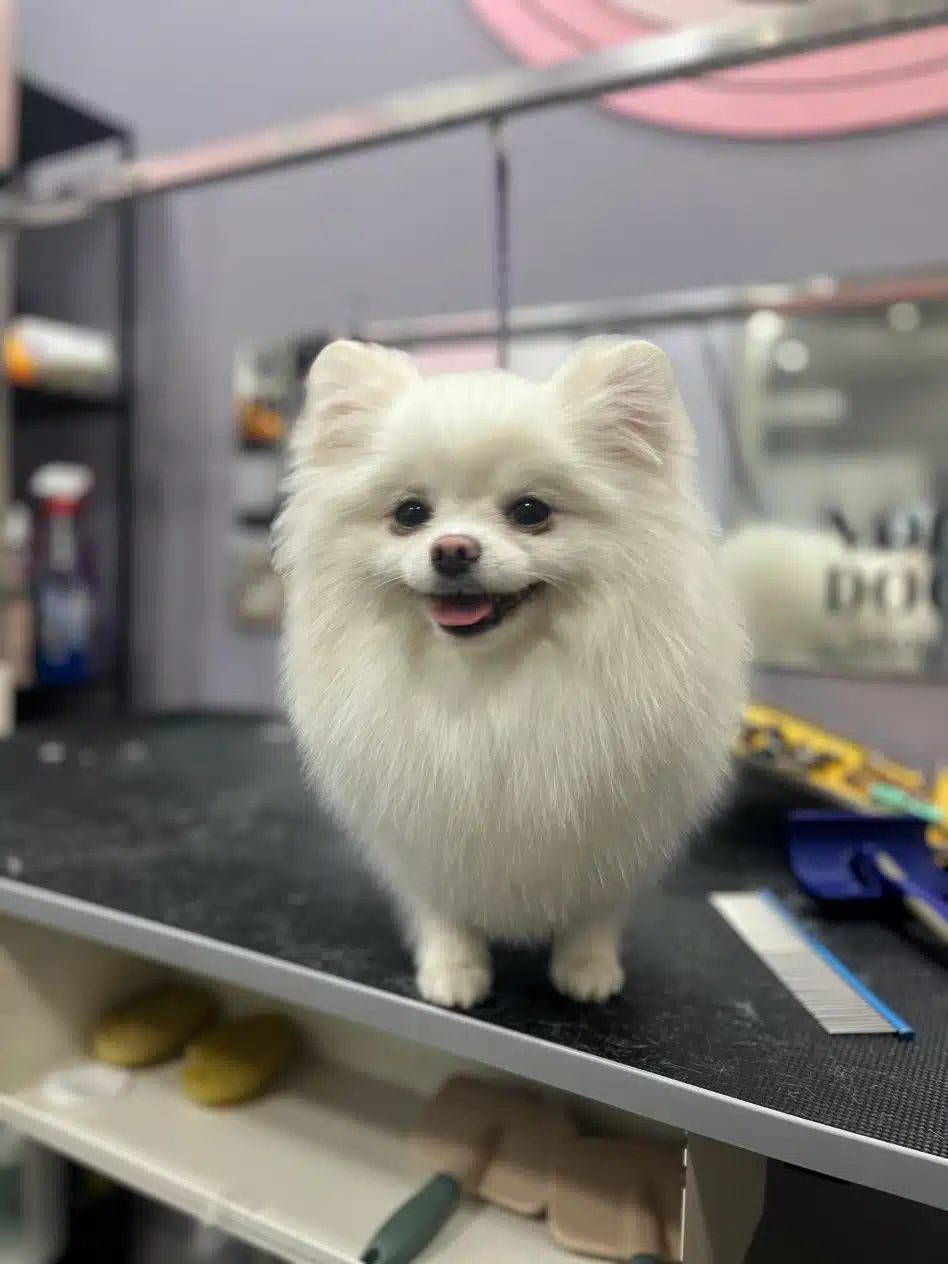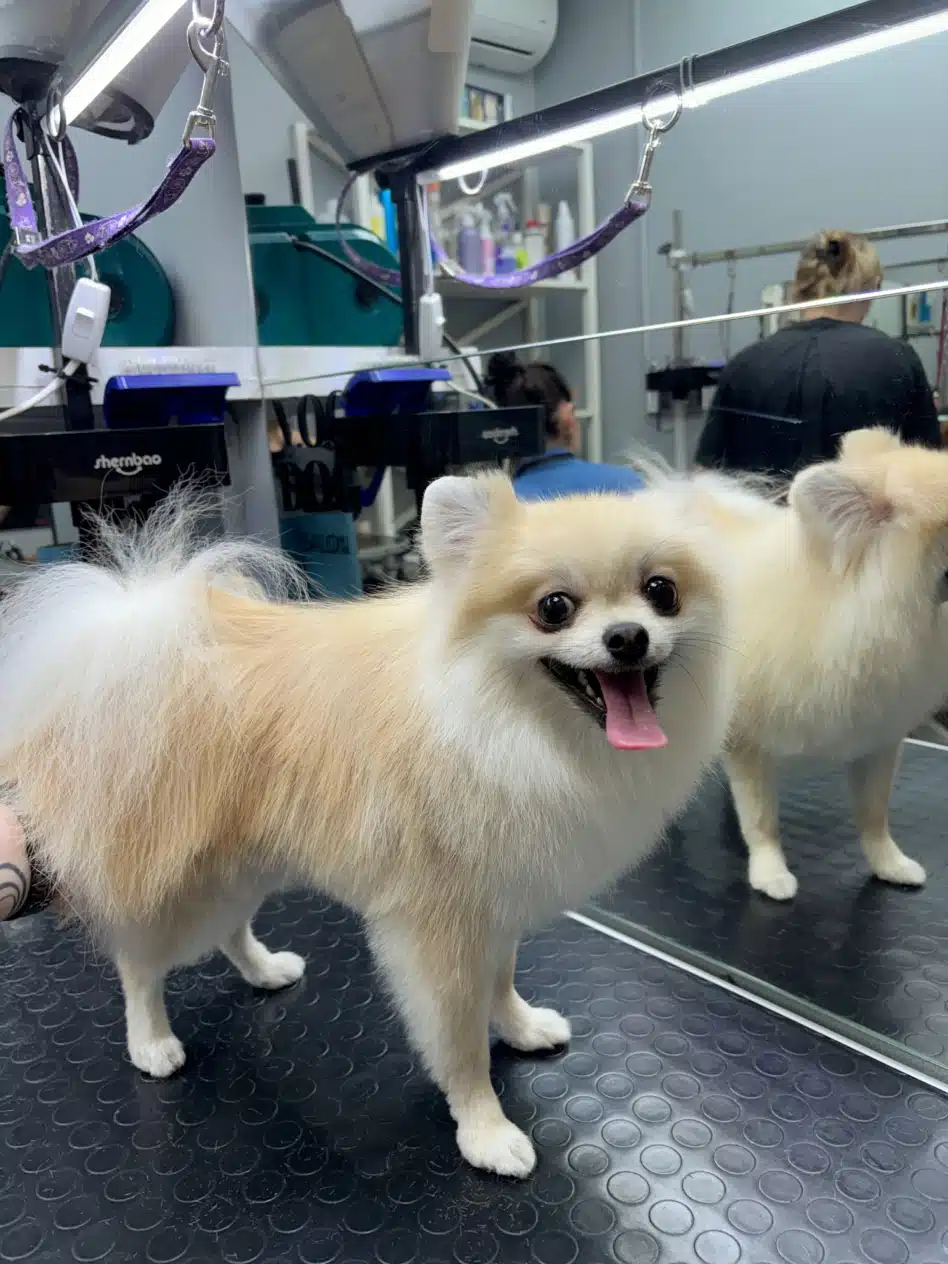 Nigdy nie strzyż szpica do samej ziemi – nawet latem. Jego sierść nie tylko zdobi pysk, ale także chroni skórę przed przegrzaniem i poparzeniem słonecznym. Strzyżenie szpica powinno być delikatne i utrzymywać długość włosa co najmniej 2-3 cm. Wybierz salon, który ma doświadczenie w pracy ze szpicami pomorskimi, ponieważ jest to rasa o specjalnej strukturze sierści i zachowaniu. Przed strzyżeniem omów styl z groomerem, pokaż przykłady, powiedz jak zachowuje się Twój szpic – czy spokojnie reaguje na dotyk, czy ma alergie lub problemy skórne. A co najważniejsze, nie próbuj obcinać sierści samodzielnie w domu: nawet niewielkie uszkodzenie sierści może kosztować szpica lata rekonwalescencji. Najlepszym wyborem są delikatne, precyzyjne dłonie doświadczonego groomera, który wie, jak podkreślić piękno tej wyjątkowej rasy bez wyrządzania jej krzywdy.