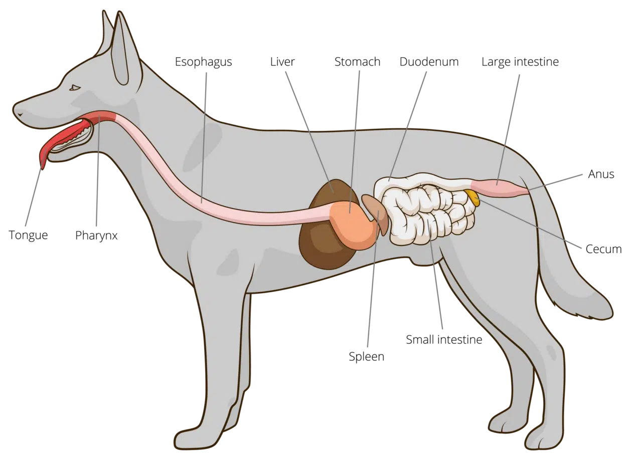 Пищеварительная система собак приспособлена к эффективному перевариванию мяса и других продуктов животного происхождения. Основные органы пищеварения включают пищевод, желудок, тонкий и толстый кишечник, а также печень и поджелудочную железу, которые играют ключевую роль в переработке и усвоении пищи.