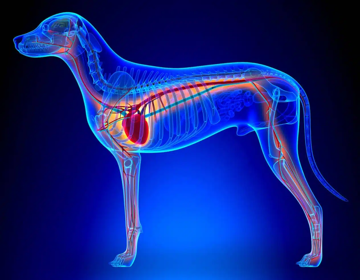Собачье сердце относительно велико по отношению к массе тела и работает быстрее, чем у человека. Частота пульса зависит от размера породы: у мелких собак — от 100 до 140 ударов в минуту, у средних и крупных — от 60 до 100. Это помогает животному быстрее восстанавливаться после нагрузок.