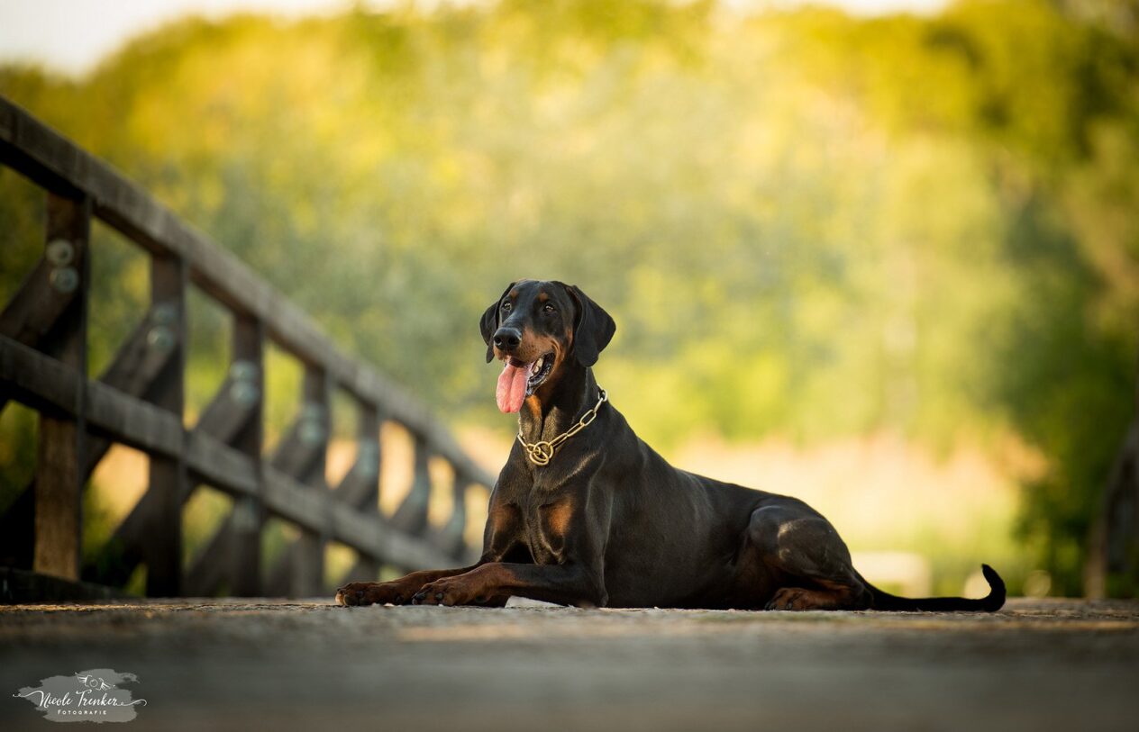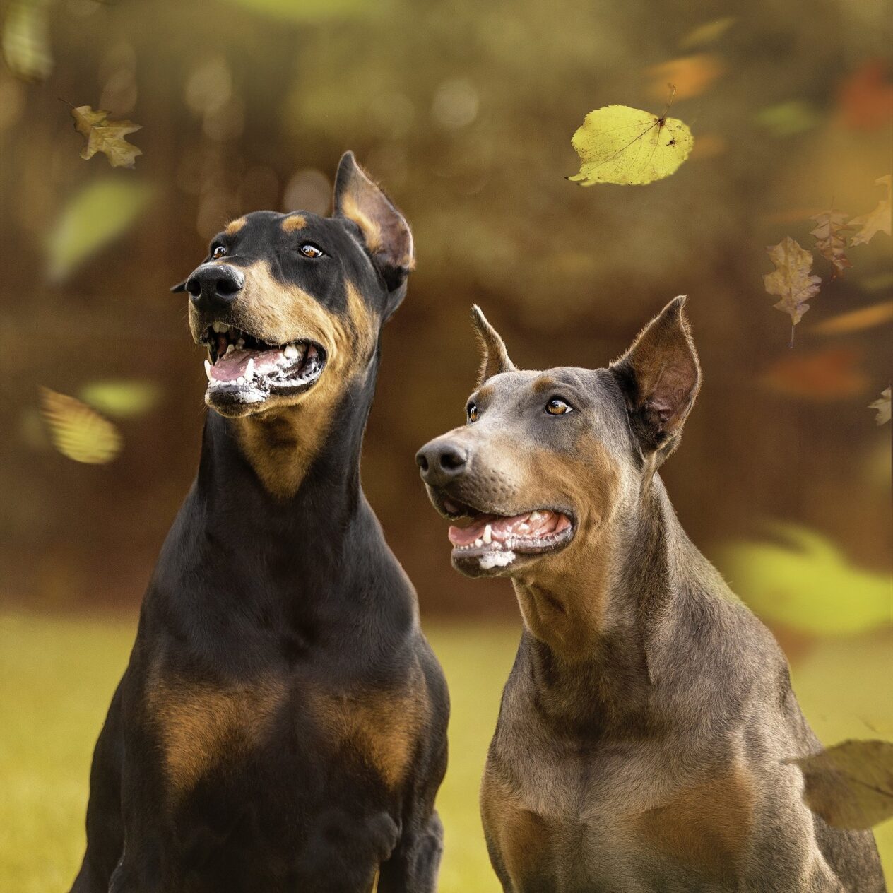 Доберман — это среднего размера собака с атлетическим строением, известная своей преданностью, интеллектом и защитными качествами. Они часто используются в служебной и охранной работе благодаря своим естественным способностям к обучению и высокой трудоспособности.