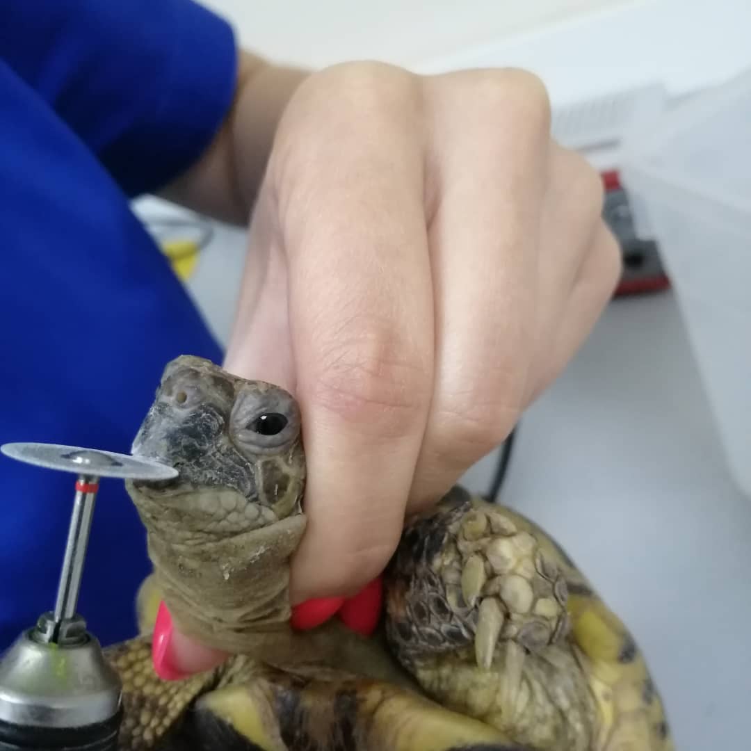 Черепахи постоянно растут когти, и если они не стачиваются естественно, когти нужно обрезать. Слишком длинные когти могут мешать ходить или даже повреждать кожу. Для обрезки используйте специальные инструменты, такие как ножницы для когтей, и будьте осторожны, чтобы не задеть живую часть когтя (где проходят сосуды и нервы).