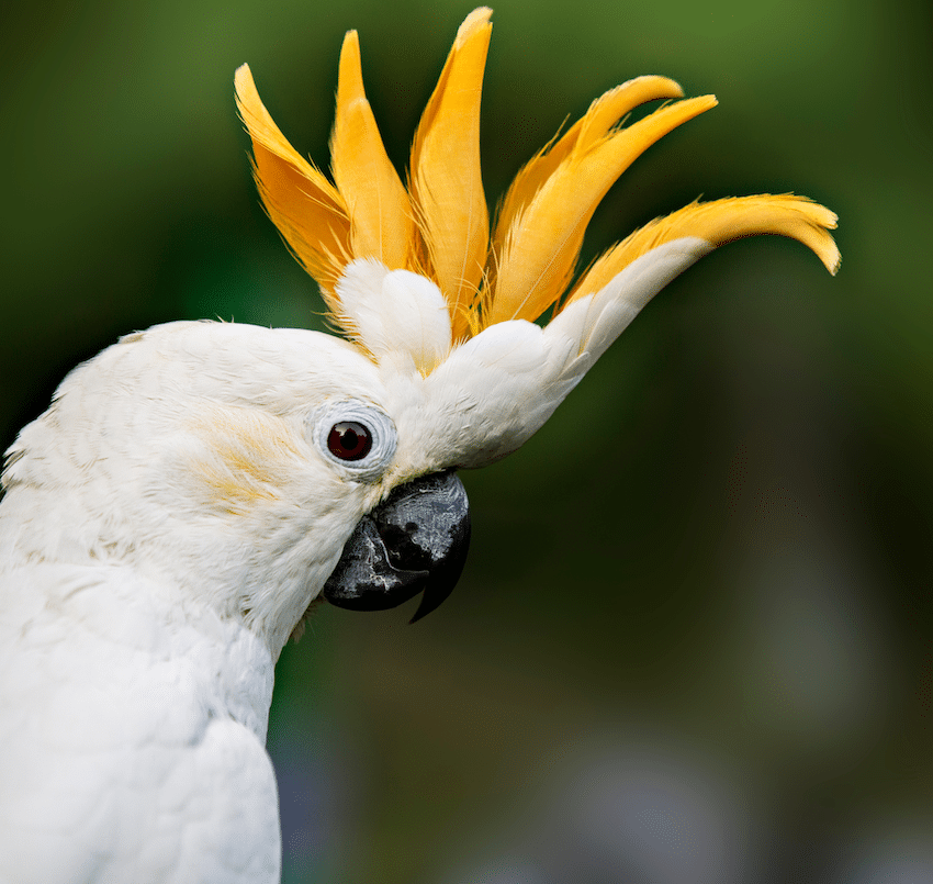 Визуально какаду легко узнать: кроме челки, они имеют кремовый, розовый или белый окрас, крепкий изогнутый клюв и выразительные темные глаза, которые будто всегда что-то замышляют. Их вид часто ассоциируется со сказочными существами, и недаром: живой какаду выглядит так, будто его создали художники, а не природа.