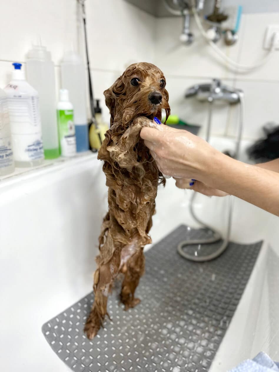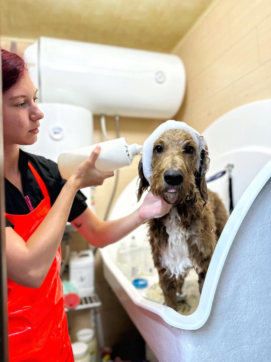 - Наши опытные грумеры знают все о купании собак разных пород. Они используют только премиальные специализированные шампуни и кондиционеры, которые лучше всего подходят для типа шерсти и кожи вашего любимца.