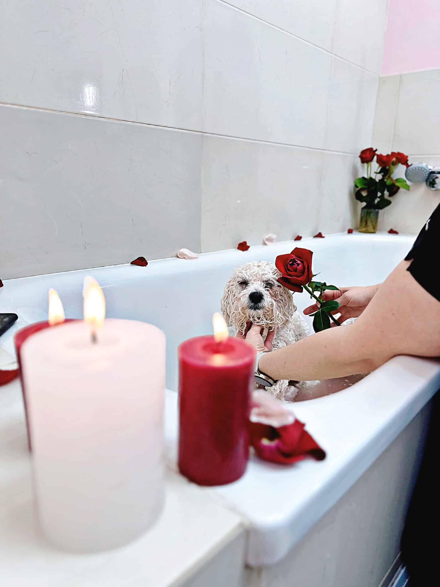 - Купание по необходимости. Если шерсть сильно загрязнена или у собаки запах, купание нужно, но с учетом мер предосторожности.