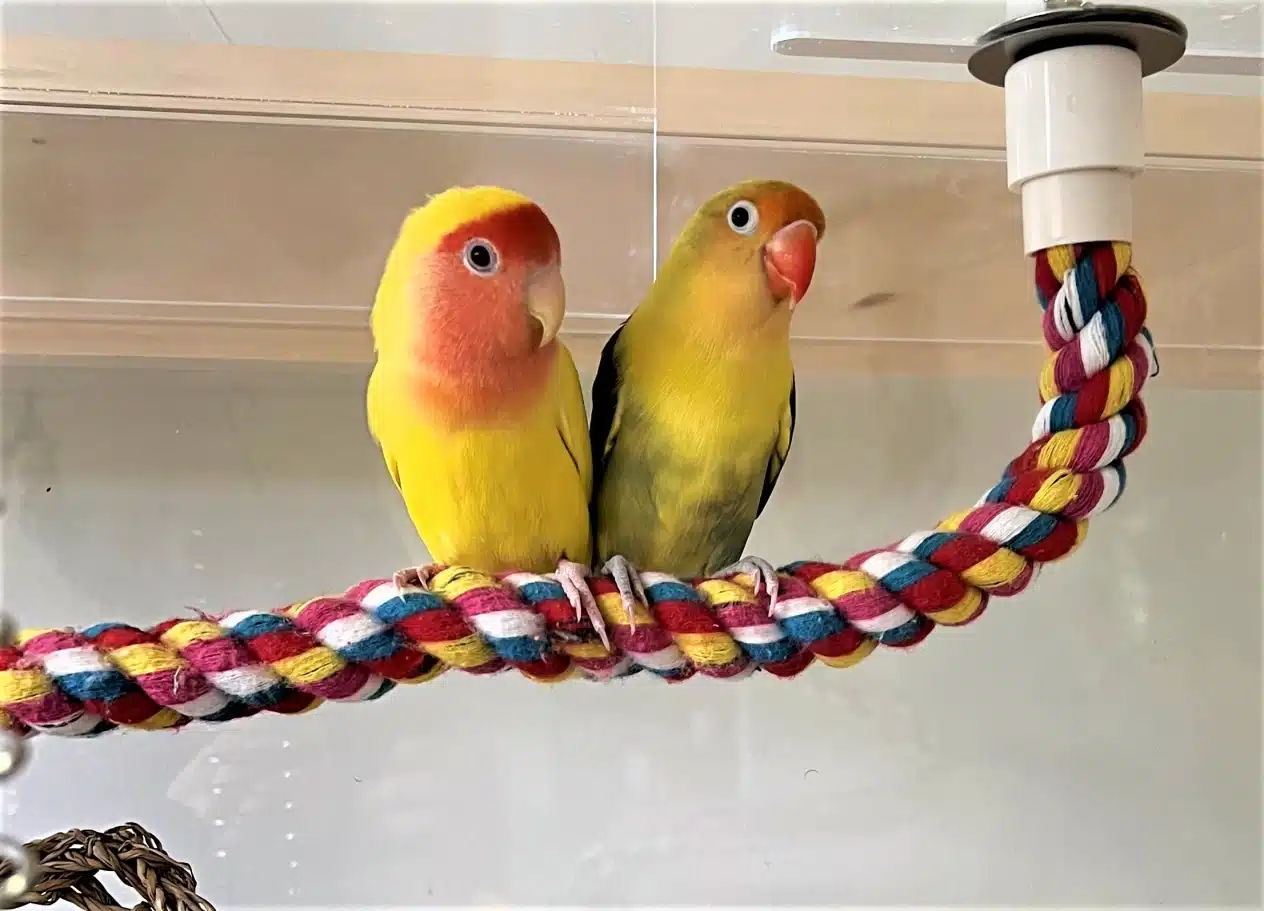 Неразлучники — очень подвижные, поэтому хотя бы 1-2 часа в день им надо летать вне клетки. Конечно, в безопасном помещении без открытых окон, зеркал или ядовитых растений. Идеально — отдельная комната или специальная зона для полетов.
