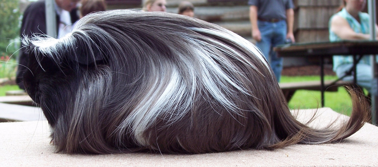 Перуанская морская свинка поражает длинной шелковистой шерстью, которая может произрастать до 50 см. Интересно, что эта шерсть часто растет вперед, образуя своеобразную «челку».