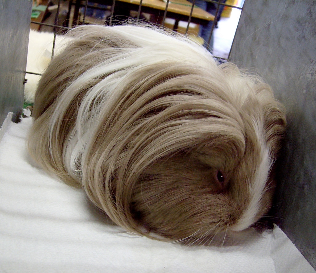 Стрижка. О выстригании колтунов мы уже поговорили, но не затронули тему полноценной стрижки морских свинок. Данная процедура актуальна для длинношерстных пород, не участвующих в выставках. Обычно владельцы просят сделать стрижку, чтобы облегчить себе уход за любимцем и избежать специфического неприятного запаха. У длинношерстных морских свинок часто в шерсти путается наполнитель или корм, а также меняется цвет и запах шерсти из-за постоянного контакта с мочой и фекалиями.