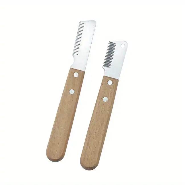 Стрипинговый нож используется для удаления мертвых волос из густой шерсти. Он позволяет быстро и эффективно удалить лишнюю шерсть, помогая поддерживать необходимую текстуру.