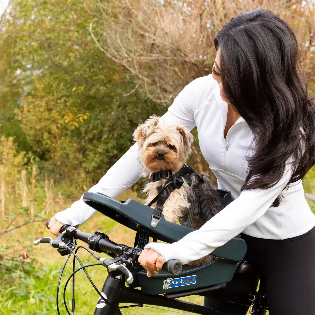- Посадите собаку в прикрепленную корзину или прицеп и пристегните ремнями безопасности.
