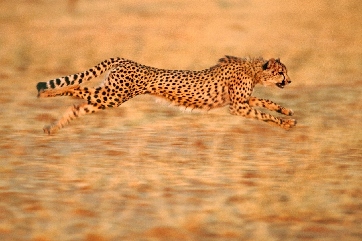 На суше первое место по скорости занимает гепард. Он может разгоняться до 110-120 км/ч, но лишь на коротких дистанциях, до 20-30 секунд. Это «спринтер» среди животных, который обязан своей скорости гибкому телу, длинным ногам и мощным легким.
