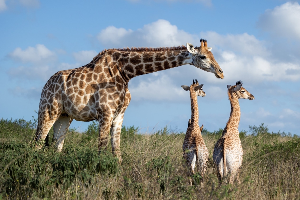 Жирафа — настоящий небоскреб среди животных. Его рост может достигать до 6 метров, из чего половина — шея, которая состоит из тех же семи позвонков, как и у человека. Она легко дотягивается до листьев, до которых другие животные не имеют никакого шанса достать. Ее сердце — размером с футбольный мяч — качает кровь с огромной силой, чтобы поднять ее до головы.