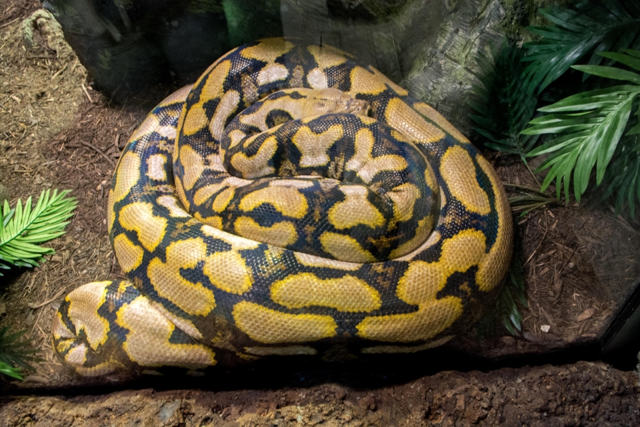 Этот рептилийный гигант живет в Юго-Восточной Азии и может вырастать более 7,5 метров в длину, хотя были зафиксированы экземпляры, превышающие 10 метров. Хотя питон не ядовит, он способен задушить и проглотить животное размером с оленя. Змея с таким размером производит впечатление древнего чудовища из мифов.