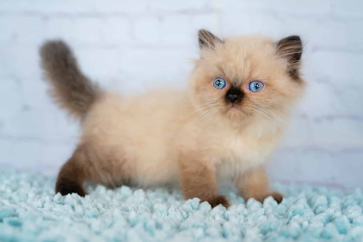 Гималайские кошечки имеют пушистый мех, который по окрасу похож на шубку гималайского кролика. Порода выведена результатом скрещивания сиамской и персидской. Окрас котика напоминает окрас сиамского, но проявляется только на второй-третий год жизни животного. Шикарный пушистый мех требует тщательного вычесывания и ухода. Ярко-голубые глаза, мягкая длинная шерсть, спокойный дружелюбный характер, характерное мяуканье-щебетание выделяют кошку из других пород.