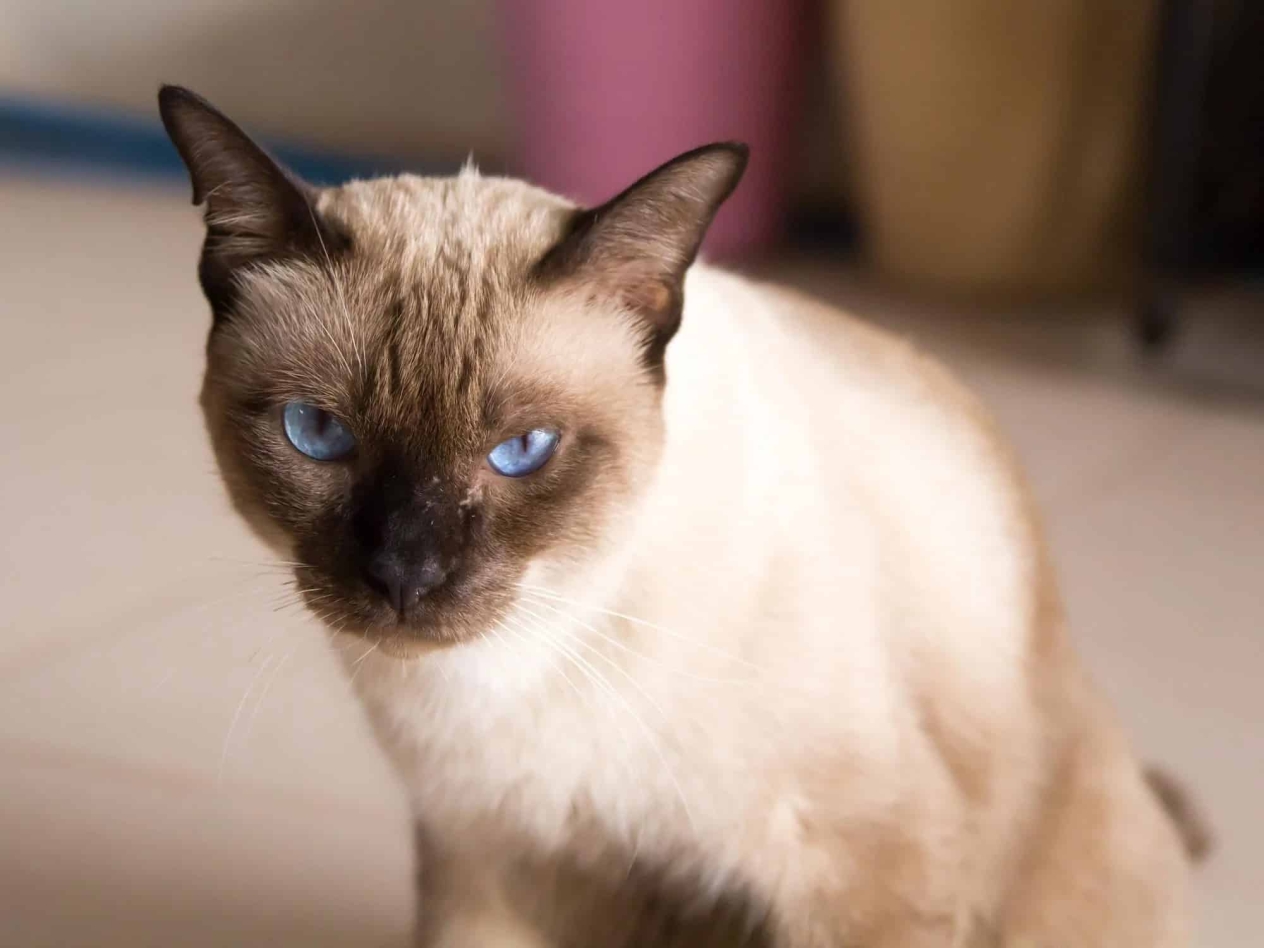 Сиамская кошка по праву считается самой известной представительницей голубых глаз. Пушистая красавица врезается в глаз ярко-голубыми глазами и уникальным окрасом. Для Муркотухи характерна более темная шерсть в области ушей, лица, хвоста и лап, а тело имеет светлый оттенок. Такой благородный окрас имеет название колорпойнт. Если Вы решите приобрести Сиамского кота, то получите элегантного, дружелюбного, живого Друга.
