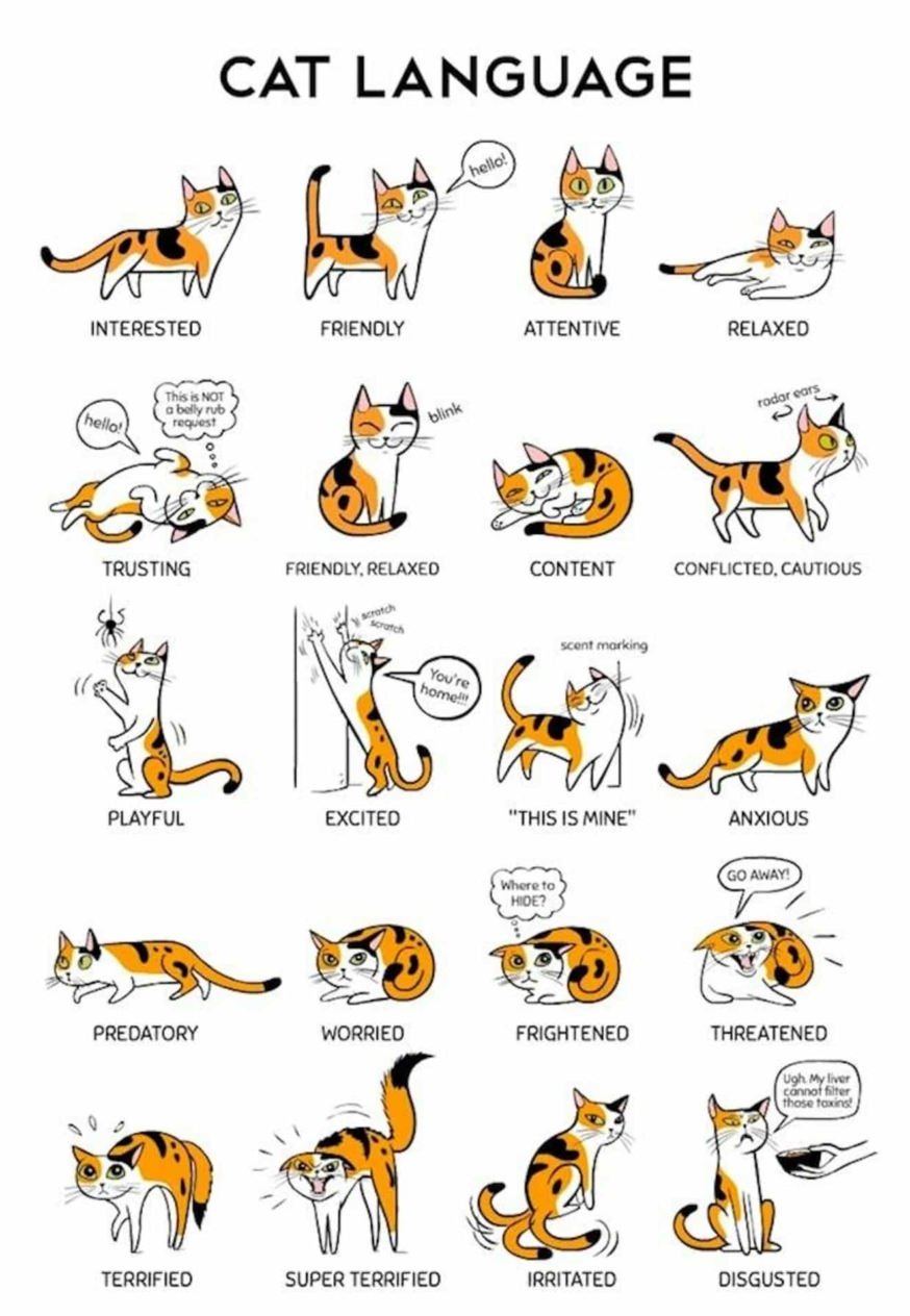 Як ми можемо зрозуміти мову та наміри котів? Розглянемо кілька основних станів кота та опишемо, як поводиться Хвостик під час їх перебігу.