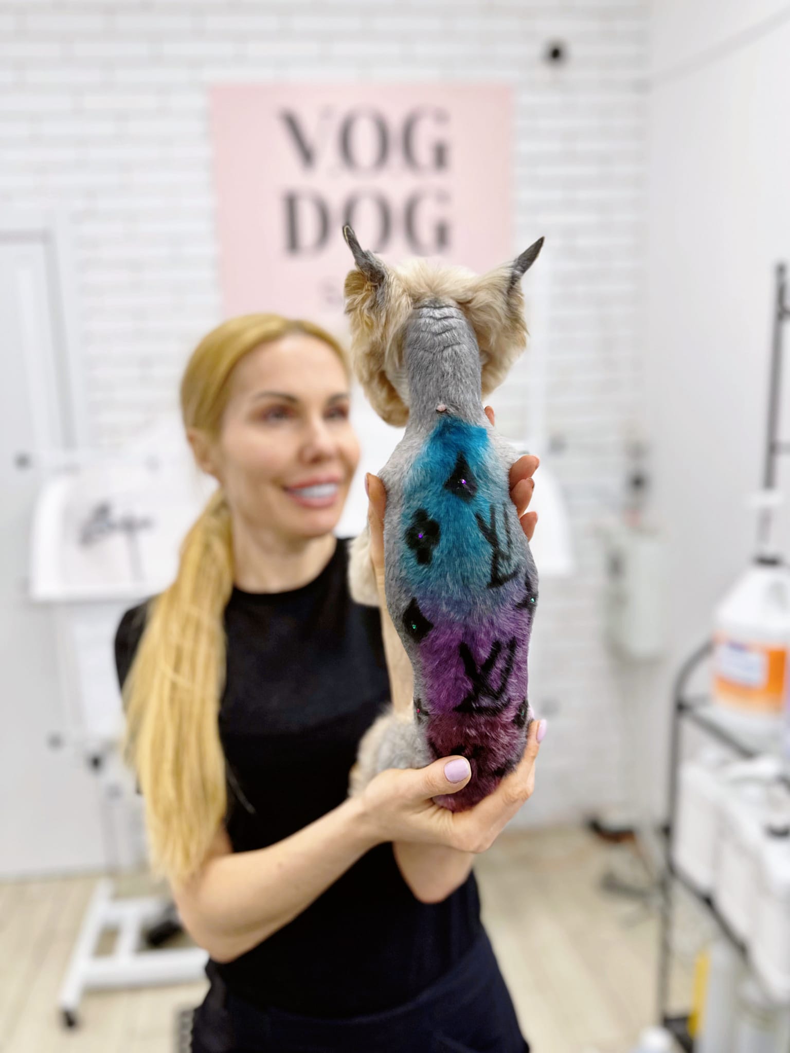 - Креативний грумінг виходить за рамки традиційного грумінгу, додаючи елементи творчості та індивідуальності до зовнішнього вигляду вашого улюбленця. Фарбування шерсті – один з найпопулярніших методів креативного грумінгу. Для цього процесу використовуються спеціальні фарби, які є безпечними для тварин. Грумери нашої мережі систематично приймають участь у різноманітних конкурсах з креативну, де набираються нових вражень та досвіду. Більше про креатив та його види ви можете ознайомитись в нашому блозі за посиланням: https://vogdog.com/mystetstvo-kreatyvnoho-hruminhu-za-mezhamy-zvychaynoho.