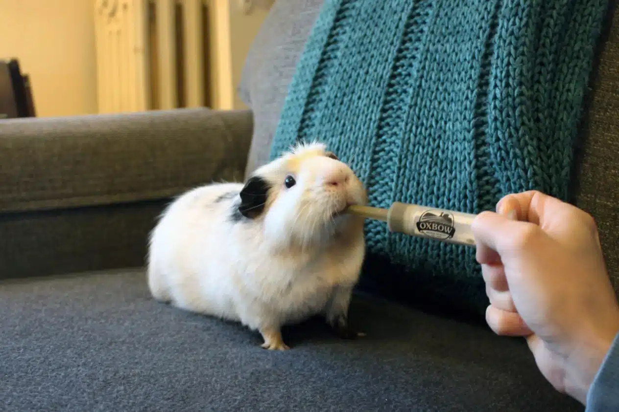 Вітамін С є тією добавкою до їжі, яка обов’язково має бути присутньою в раціоні морських свинок. Все через те, що свинки, як і люди, не здатні самостійно виробляти цей вітамін через відсутність у них ферменту, необхідного для синтезу аскорбінової кислоти. Низький рівень цього вітаміну призводить до розвитку цинги, яка у цих тварин проявляється кровоточивістю ясен, болем у суглобах, проблемами з шерстю та зниженням імунітету. Тому цим улюбленицям потрібно або вживати продукти, багаті на вітамін С, такі як ківі, перець, петрушка, або отримувати його у вигляді таблеток, які слід подрібнити та змішати з кормом. Добова потреба морських свинок у цьому вітаміні становить 20 мг/кг, а у період хвороби, вагітності та лактації збільшується до 60 мг/кг. У будь-якому випадку такі призначення мають бути обговорені з ветеринаром.