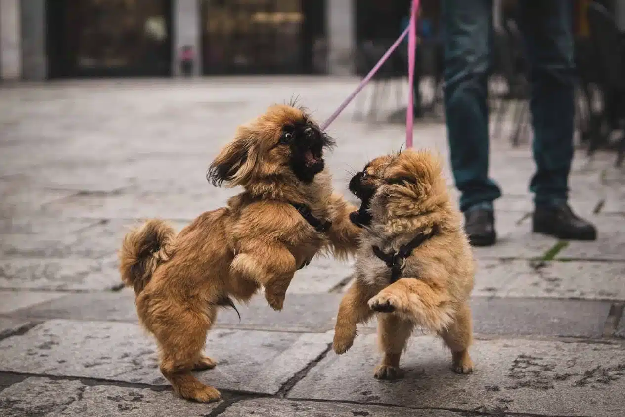 Повідки. Якщо собаки на повідках, дійте синхронно: різко, але впевнено відтягуйте їх у різні боки, не допускаючи повторного контакту.
