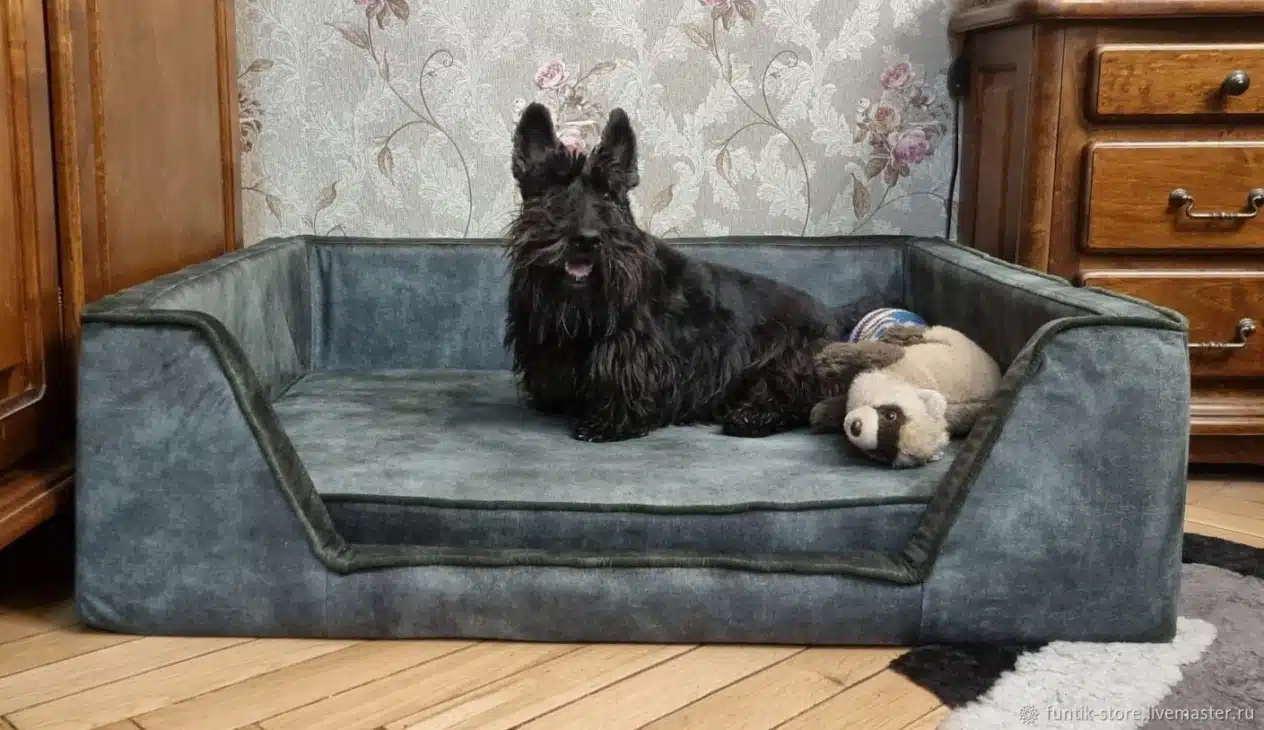 - Зовнішній матеріал: бавовна, льон, велюр або мікрофібра – м’які, приємні на дотик, добре пропускають повітря. Якщо собака линяє або має звичку рити лапами, варто обирати тканини, що відштовхують шерсть і легко чистяться.